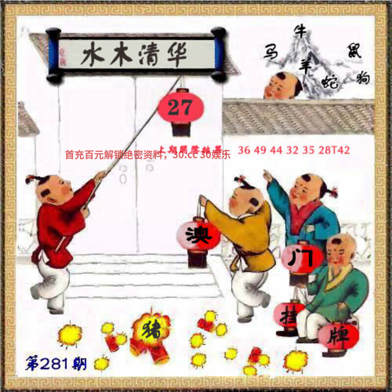 281期:挂牌《水木清华》 解释:池水明净,花木秀丽。形容园林池苑的景致清朗秀美。 解:清朗秀美解美肖蛇兔龙鸡羊马,挂:27爆:猪。 七肖:猪兔龙鸡羊蛇马 |